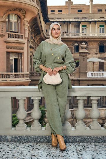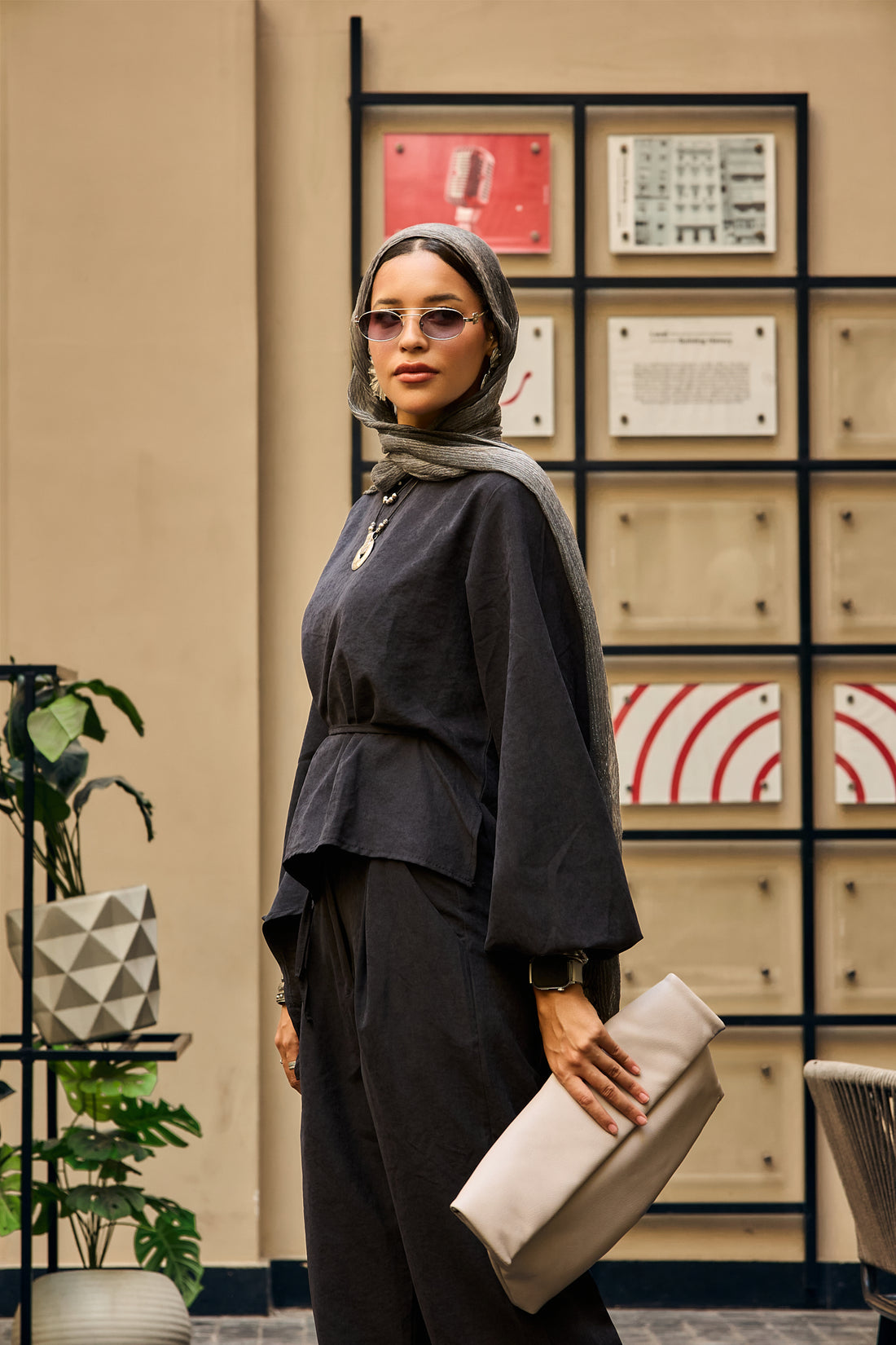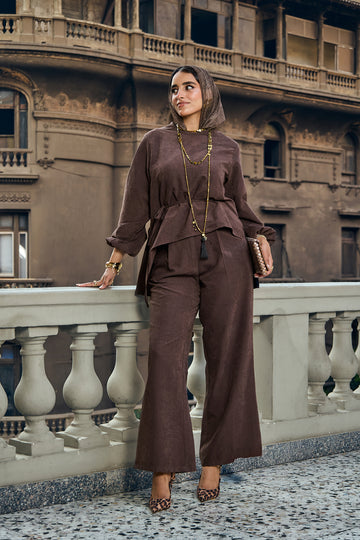 Elegant and comfortable two-piece set designed for a refined, everyday look. The loose-fit blouse and...