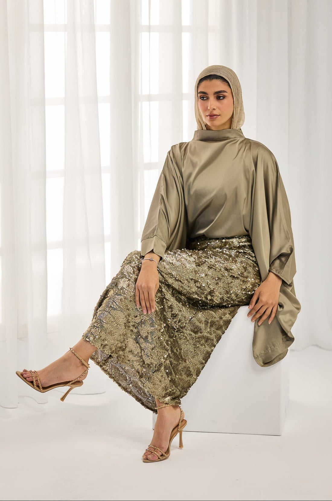Elegant and timeless, the Zahra Set combines a flowy top with a printed skirt —...