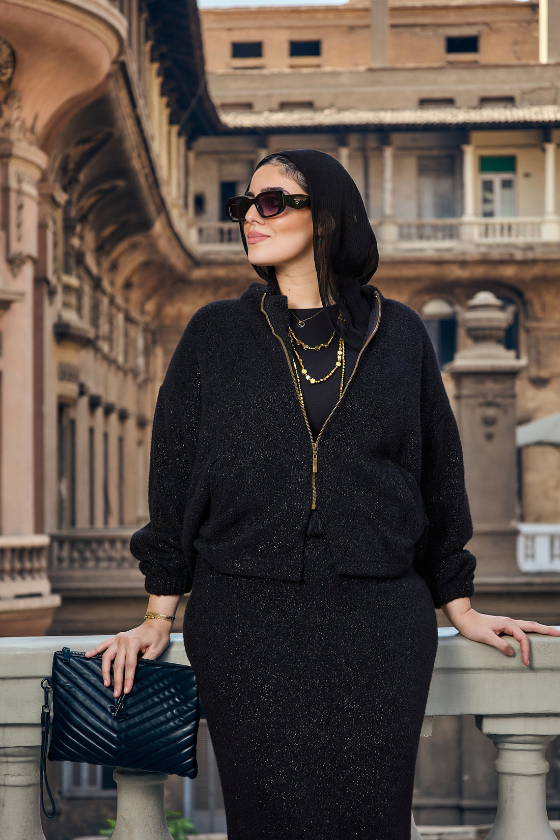 Elegant knitwear set designed for a refined, modern look.Crafted with a subtle shimmer that adds...