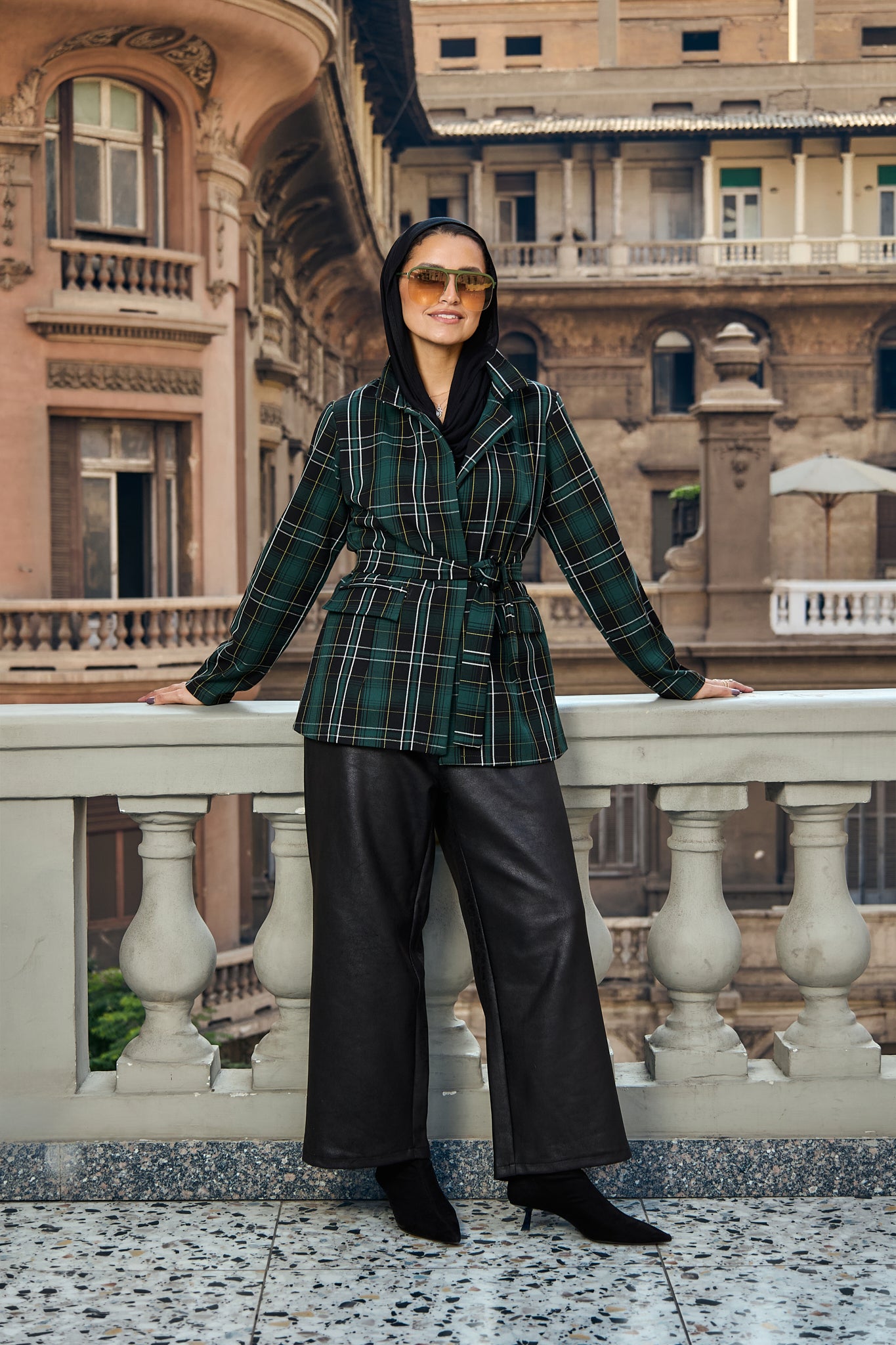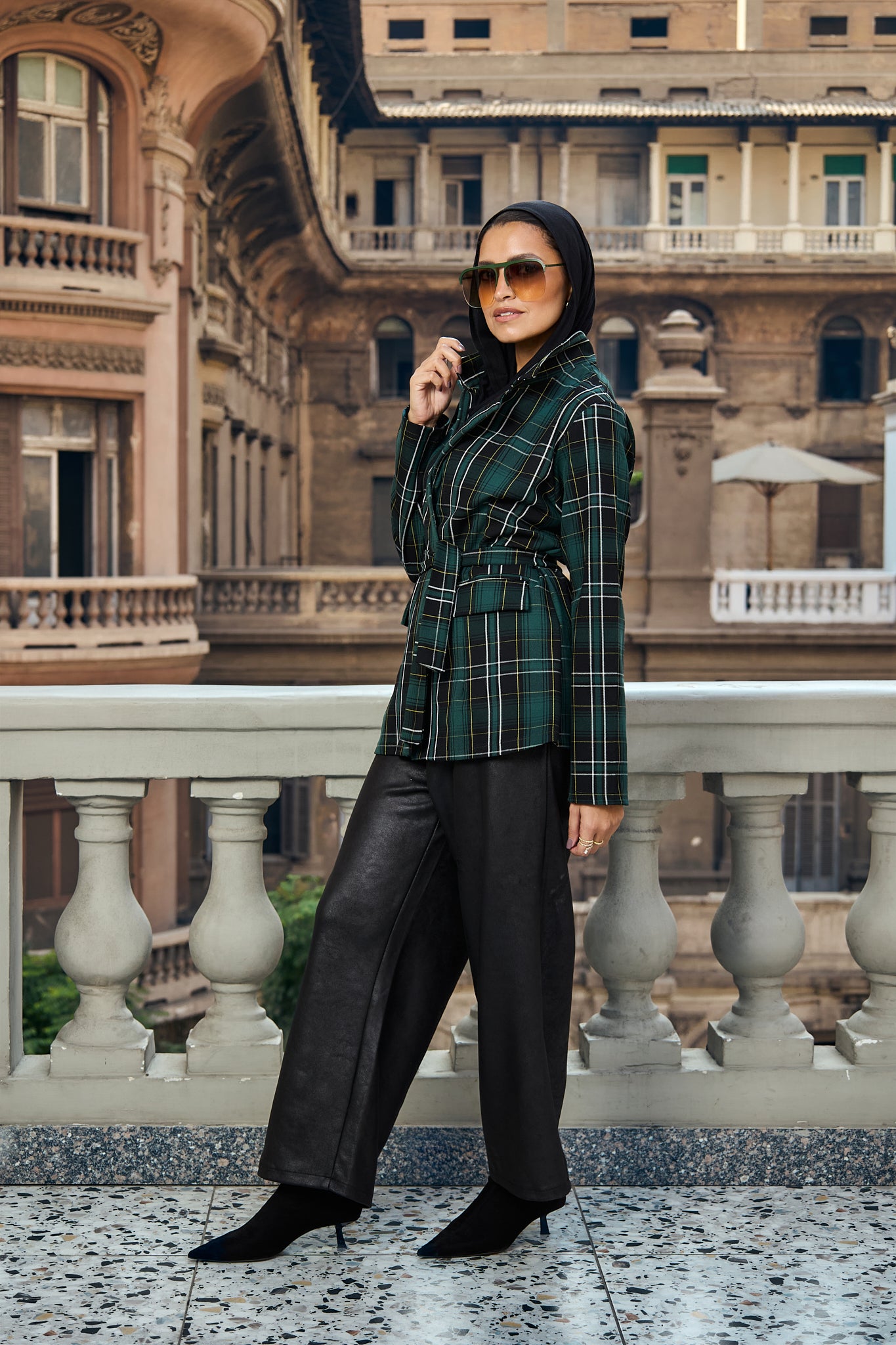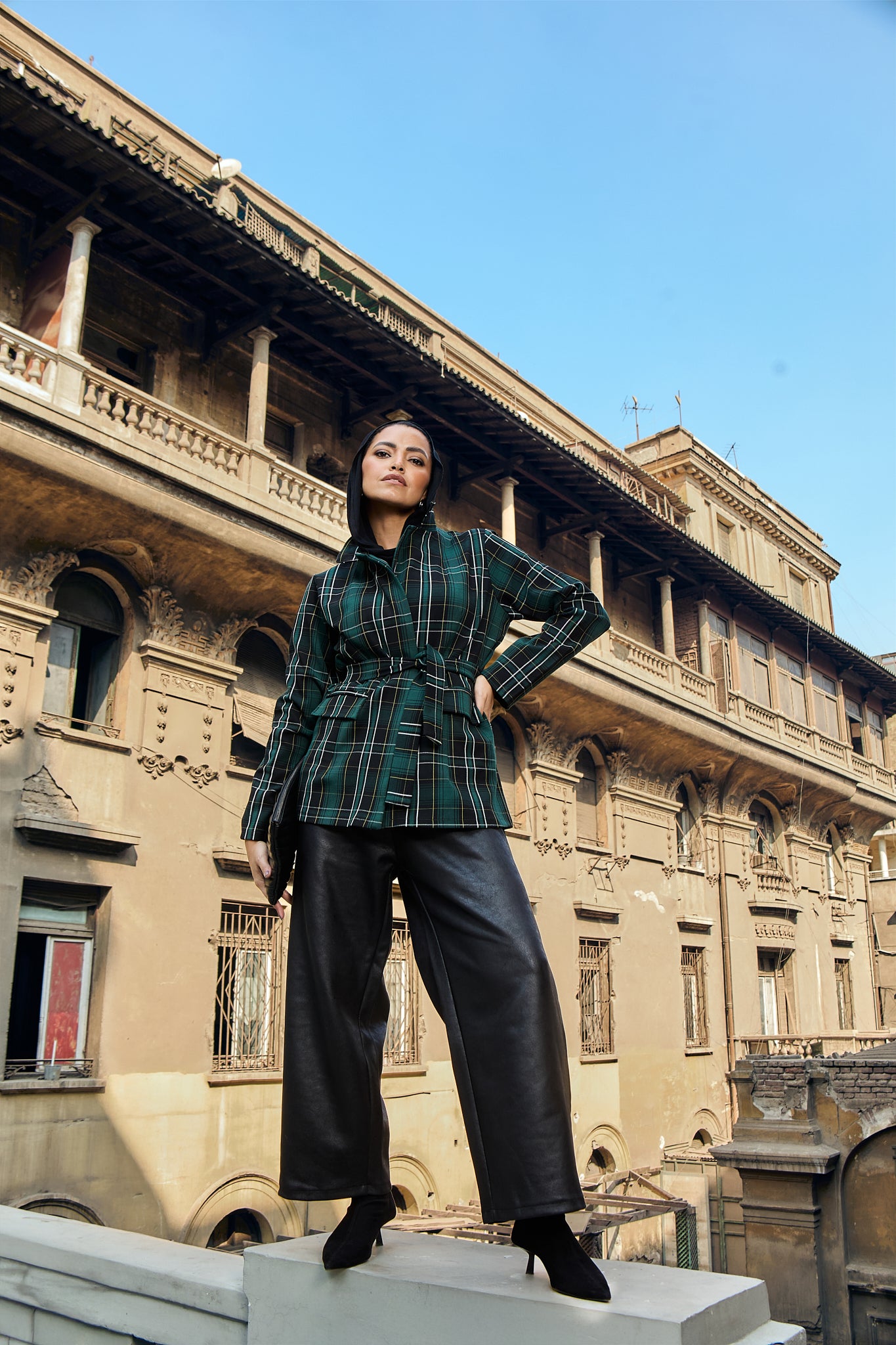 Sleek leather pants designed for comfort and style, featuring an elastic waistband and a smooth, elegant finish.